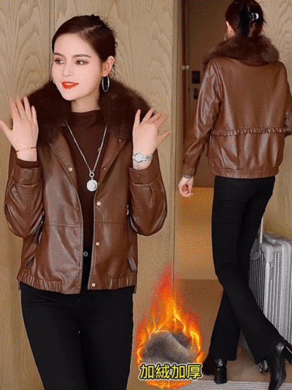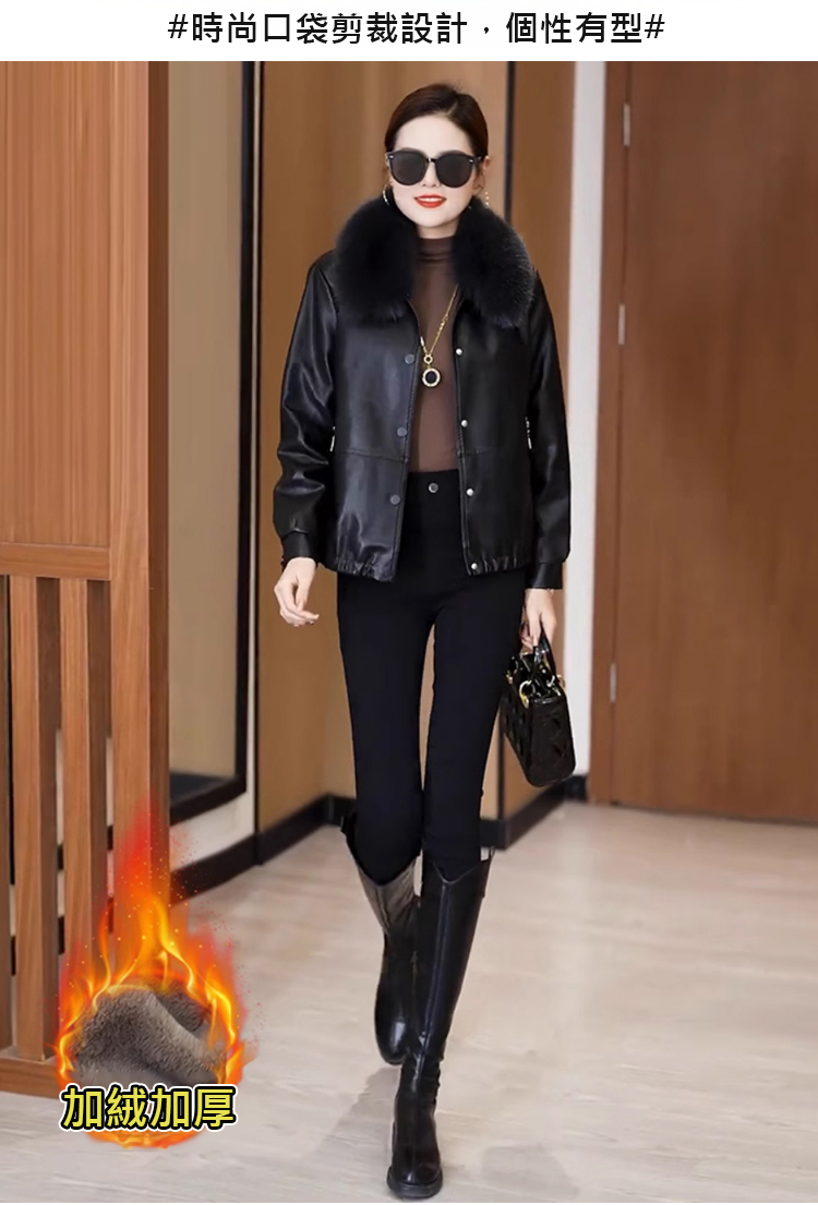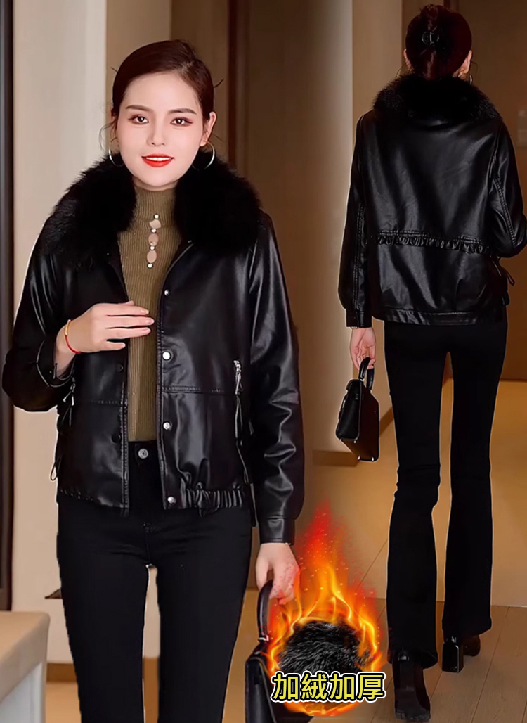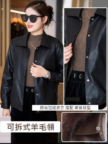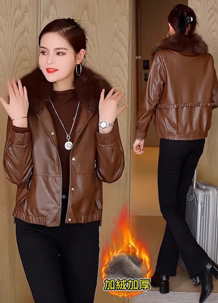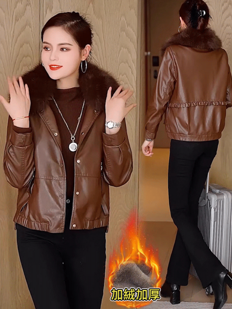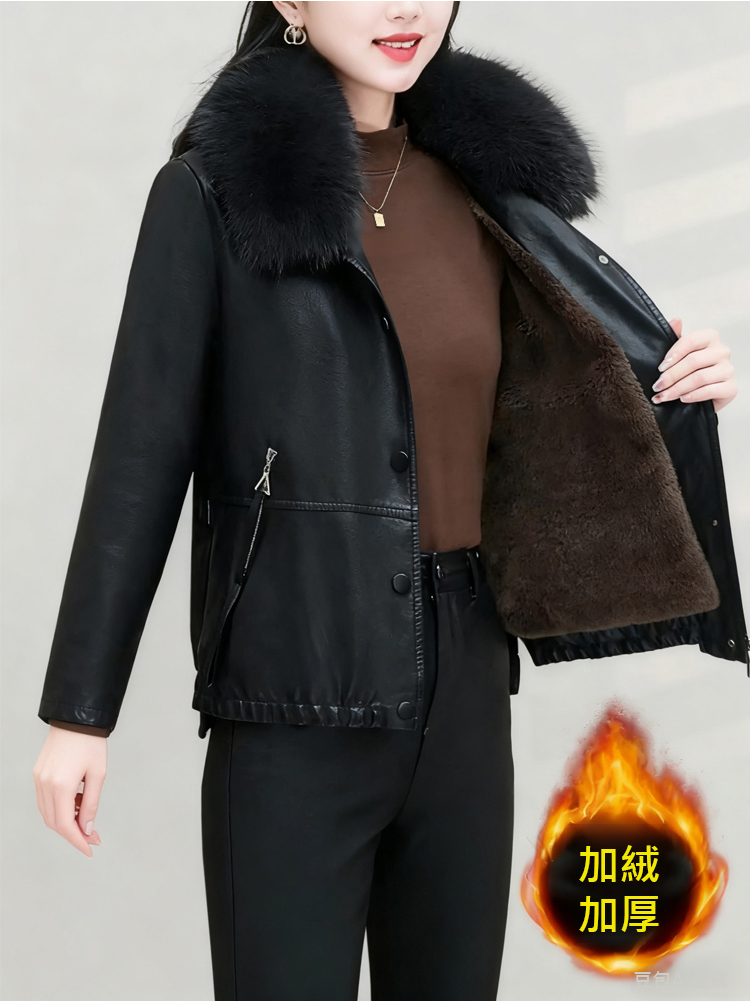 女士加絨加厚皮夾克