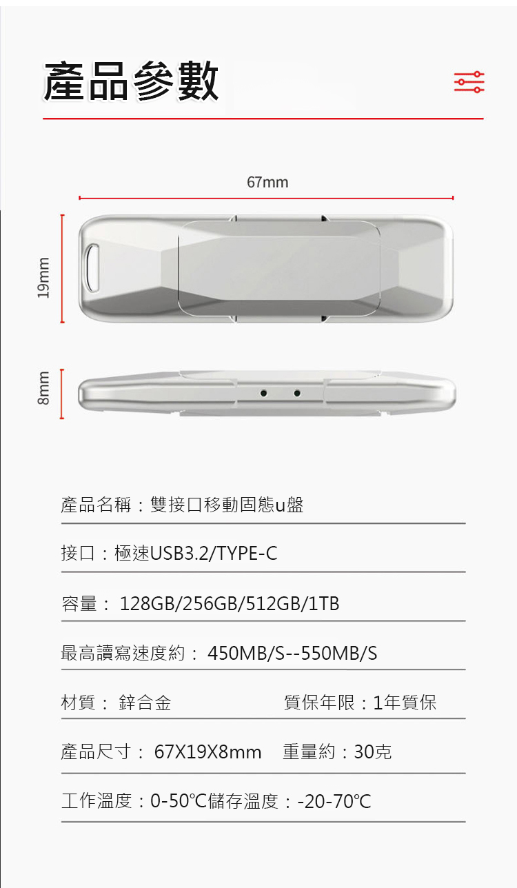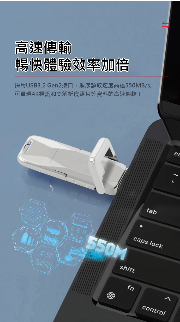 【手機電腦都相容】雙接口行動固態u碟