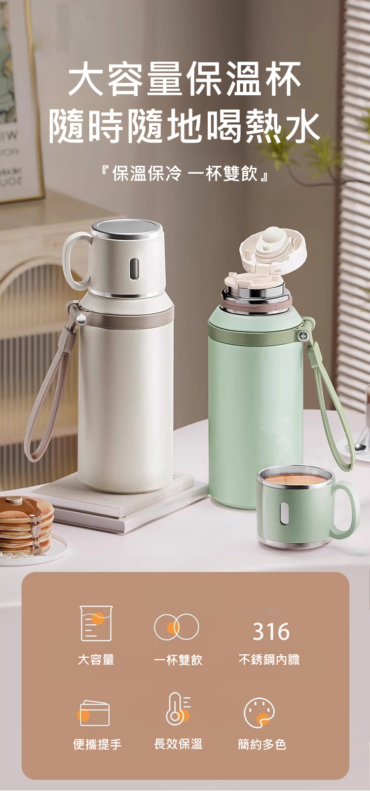 【茶水分離長保溫】316不鏽鋼碗蓋保溫杯