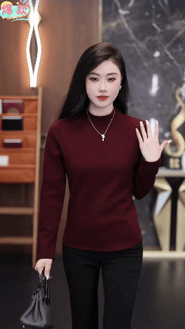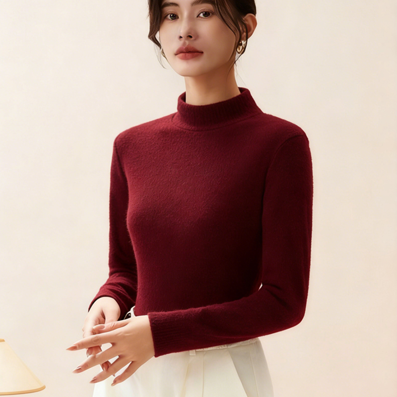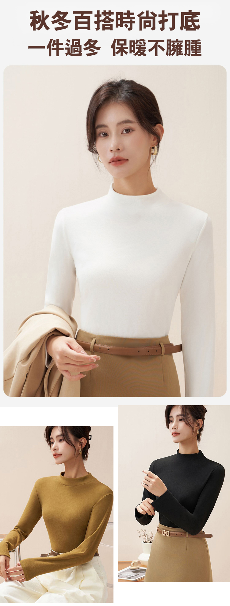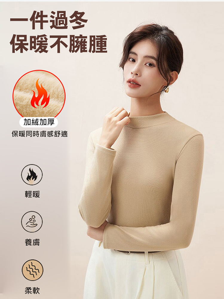 修身顯瘦半高領一體絨打底衫