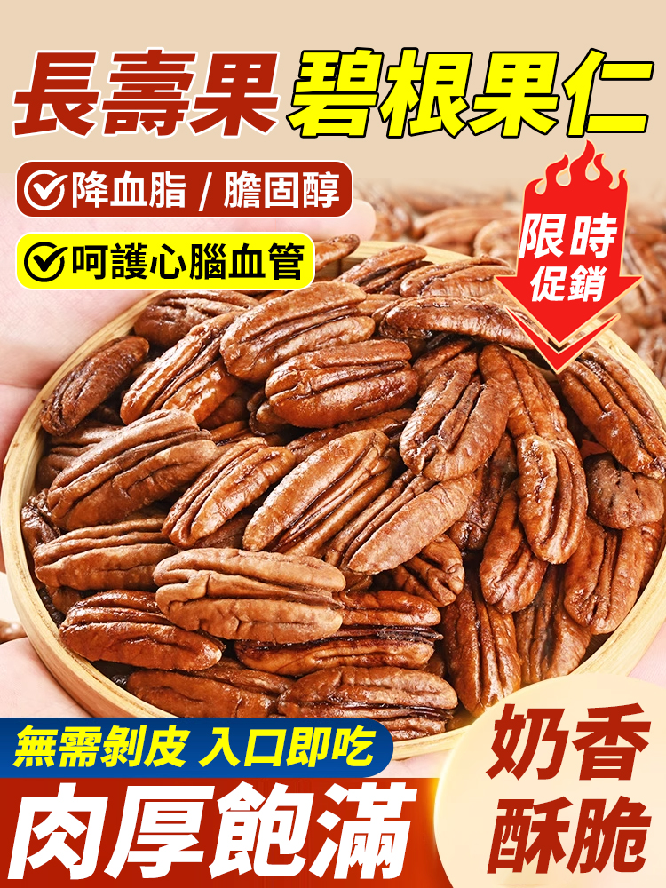 【長壽果】精品新貨無殼碧根果仁