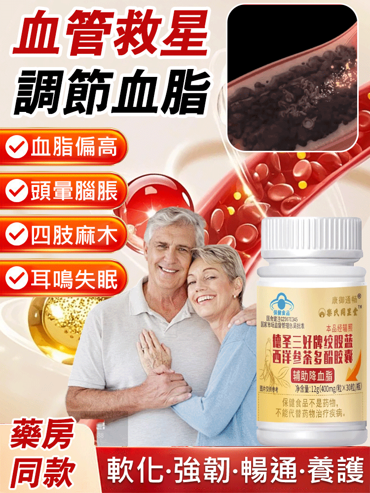 【一粒速降血脂】絞股藍西洋參茶多酚膠囊